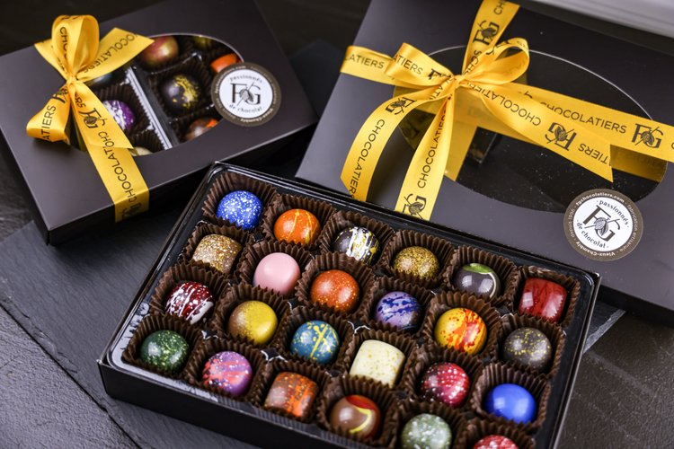 Une boîte de chocolats fins de chez FG Chocolatier