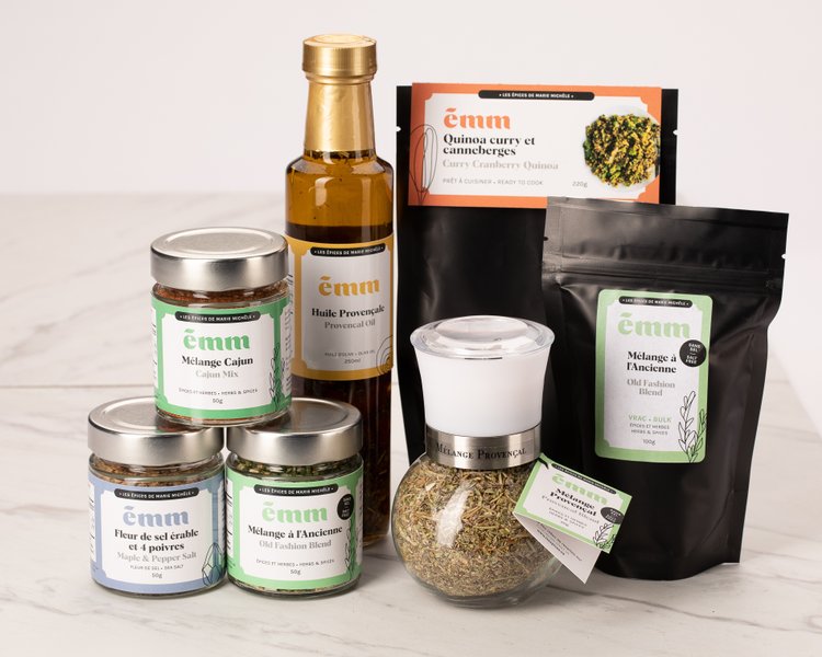 Établis directement à La Ferme Guyon de Chambly, Les Épices de Marie Michèle proposent plus d’une quarantaine de mélanges d’épices combinés pour un mariage des plus savoureux! Ces produits sans additif, sans gluten ni saveur artificielle, sauront rehausser la saveur de vos plats! Il est aussi possible de se procurer des coffrets cadeaux qui s’offrent à toutes les occasions!