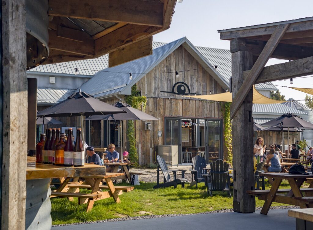 Tous les ingrédients pour un arrêt parfait sont réunis à seulement 600 mètres de l’axe cyclable Vallée-des-Forts : un bâtiment construit avec du bois de grange recyclé, une terrasse extérieure sur un fond de toile champêtre, des produits alcoolisés à découvrir créés sur place et des grignotines à se mettre sous la dent. L’été, des foodtrucks sont invités et proposent des menus diversifiés. Les familles y trouveront aussi leur compte; les chiens en laisse sont les bienvenus et des cocktails sans alcool sont offerts aux enfants.