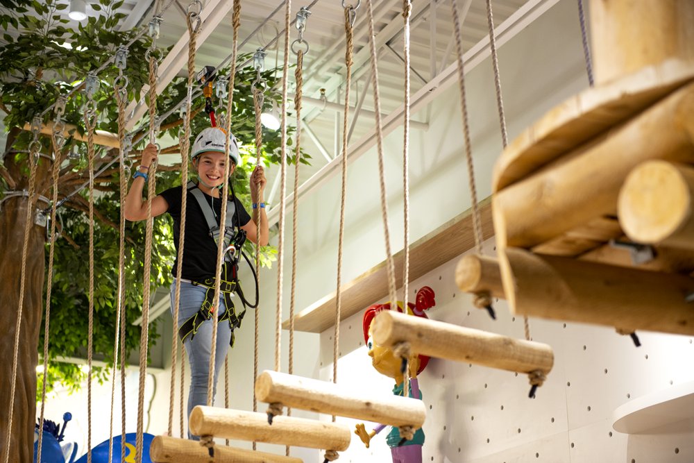 L’incontournable du BFLY est certainement le chemin avec les papillons, qui se poseront sur votre tête. Mais ce n’est pas tout ! Les enfants pourront se dégourdir avec le parcours d’arbres, qui est installé en hauteur de l’édifice, mais aussi dans la section escalade, dans le labyrinthe de miroirs, et surtout, dans le module à trois étages. Un espace est alloué aux plus petits grimpeurs.