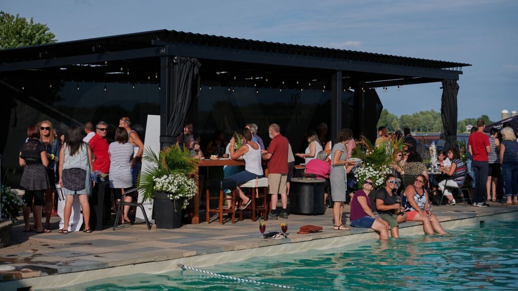 Sur l’autre rive de la rivière Richelieu, c’est l’ambiance d’une station balnéaire qui vous attend. La Marina St-Tropez, qui célèbre ses 75 ans cette année, vous transporte instantanément en vacances : terrasse au bord de l’eau, terrains de volleyball, piscine, cocktails ensoleillés… Embarquez à bord d’un bateau-taxi Alo Richelieu depuis le Quai Ryan et arrivez à la fête avec style.