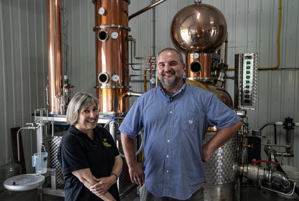 Mais c’est un projet de couple qui l’a amené à Franklin. « Michelle et moi désirions un espace à nous, dans l’optique tout d’abord de bosser les fins de semaine, car je déteste rester inactif », admet-il. Par hasard ou par coïncidence, sa conjointe et lui ont trouvé leur domaine, où il y avait un petit verger et des pâturages à leur arrivée. Immédiatement amoureux de cet endroit où tout semblait possible, ils ont opté pour ce qu’ils savaient faire le mieux : la transformation alcoolique.