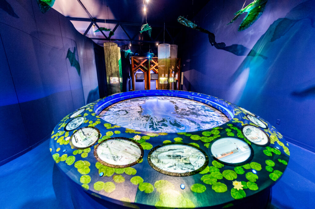 Autre lieu de passage avant d’aller sur l’eau: Statera, un dôme avec un parcours intérieur ludique et interactif. Dans la station sensorielle, on enfile un casque de réalité virtuelle pour survoler les îles.