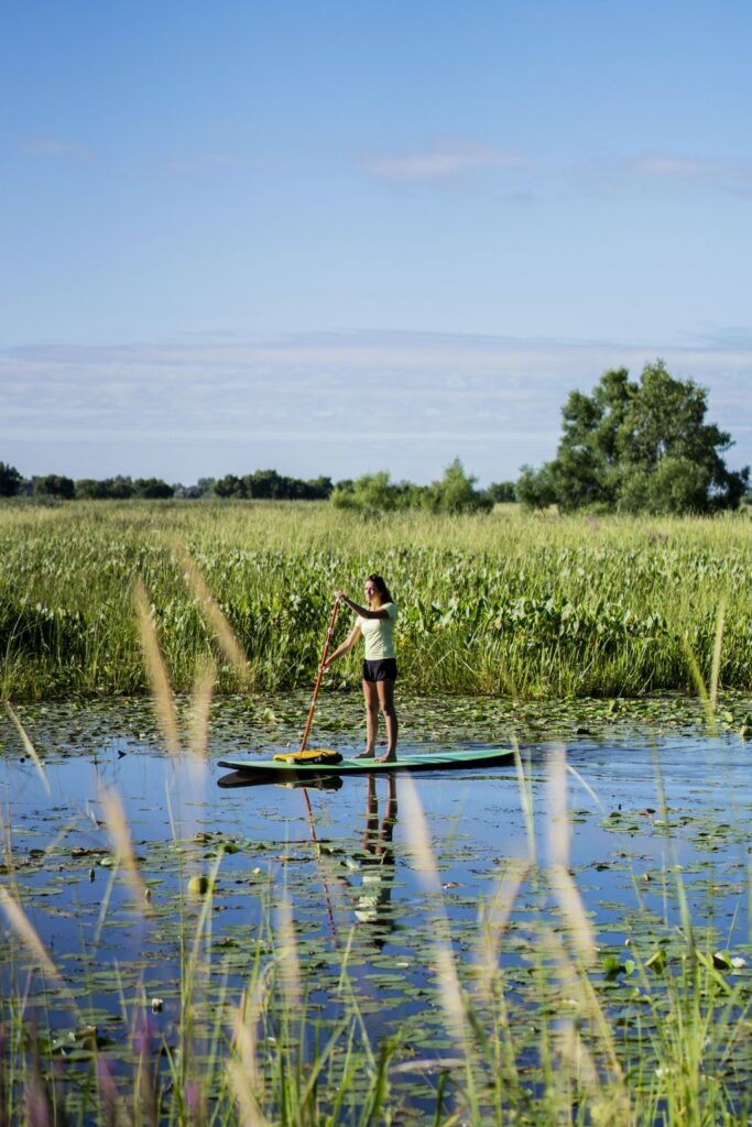 En planche à pagaie, de petits chenaux sont à notre portée. Avis à ceux qui veulent s’aventurer : une carte marine demeure très utile pour s’orienter. On peut louer l’équipement ou se joindre à une sortie guidée.