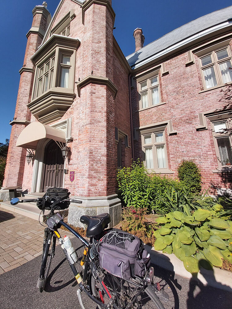 Je poursuis ma route vers le sud. La circulation s’intensifie tranquillement lors de mon arrivée à Mont-Saint-Hilaire et l’accotement se rétrécit. Le désagrément est toutefois de courte durée et j’oublie tout cela une fois arrivé au Manoir Rouville-Campbell, un établissement 4 étoiles hors du commun. Le délicieux souper quatre services et le sommeil réparateur me permettent de refaire le plein d’énergie pour la dernière journée de mon parcours.