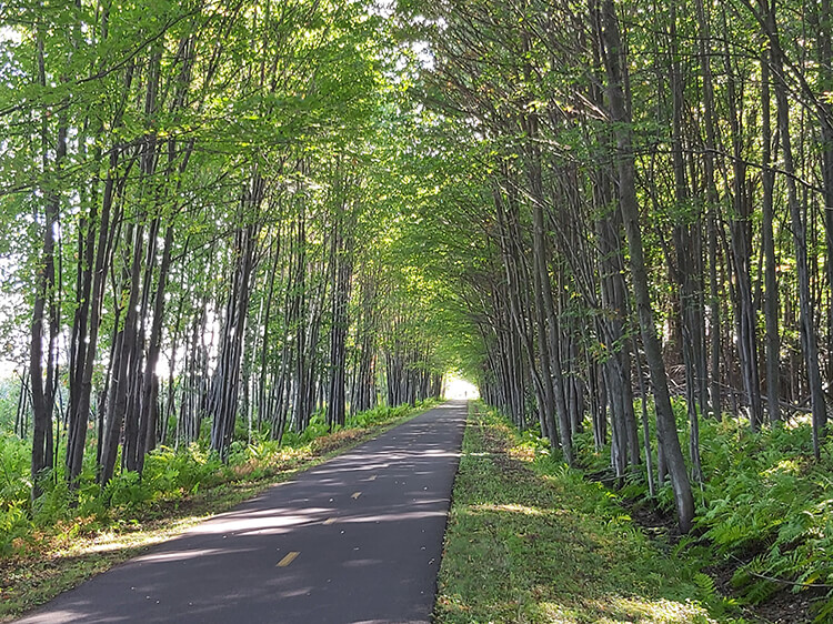Après une excellente nuit de sommeil, je redécouvre une partie de La Sauvagine, piste cyclable partant de Sorel vers l’est. Les murs de maïs alternent avec les rangées d’arbres, rendant l’endroit tout à fait idyllique pour admirer les beautés de la nature tôt en matinée.