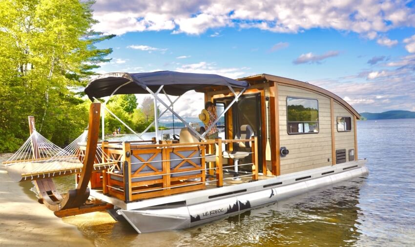 Steer a charming houseboat along the St. Lawrence River and its surroundings! Unmoor this actual floating home and head towards the Thousand Islands region, past Kingston and into Lake Ontario, or sail up the Ottawa River to enjoy a magnificent view of Montreal. You’re the captain! Don’t be fooled by its rustic appearance, the boat is equipped with all the modern comforts and navigational devices necessary to ensure the most enjoyable and unique luxury camping experience.