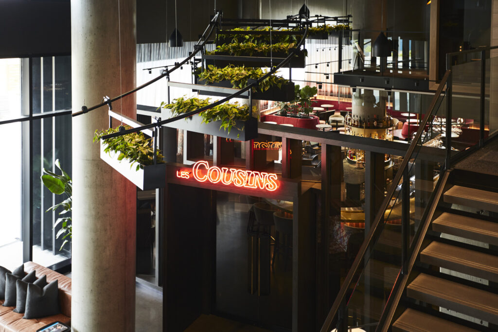 Bar Les Cousins is integrated into the Hôtel Escad, allowing guests to extend their culinary experience with a stay in modern and comfortable rooms. Situated in the heart of Quartier DIX30, the hotel is also surrounded by boutiques, restaurants, and spas to suit every desires.