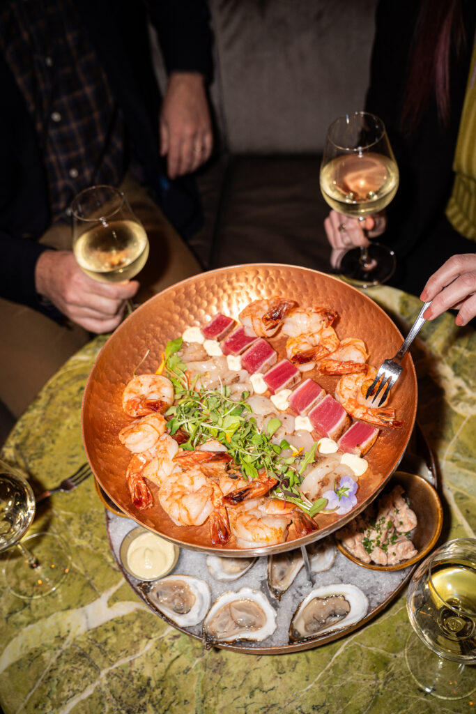 Before your eyes, the chef and their team meticulously prepare festive and fresh dishes to share: generous seafood platters, creative tartares, and impeccably fresh oysters. This culinary approach, paired with a selection of signature cocktails and wines carefully chosen by the sommelier, is set within an elegant and cozy environment suitable for professional gatherings.