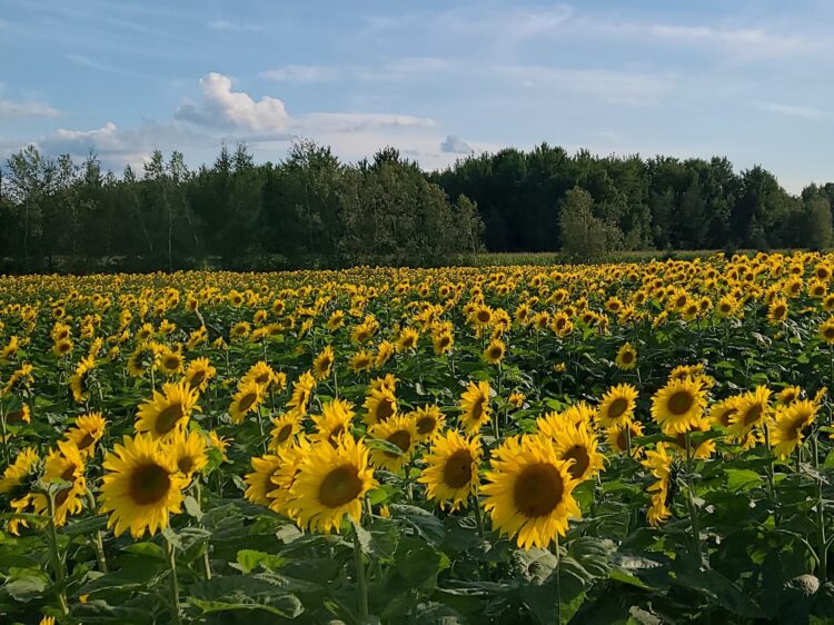 Améroquois inc., a company specializing in the production of organic sunflower oil located in Ste-Christine. Come and admire and capture images of our magnificent sunflowers as they shine in their most beautiful colors. On site, a multitude of attractions will be offered, such as: • Walking trail and picnic area; • Access to the sunflower field and tractor ride; • Photobooth at different locations on the site; • Visit of the oil mill and presentation of Améroquois inc. products; • Bring your picnic! Payment: on site by credit, debit or cash. It is important to provide cash for your purchases to our varied food offer. *Access to the site: There will be several parking lots at your disposal.