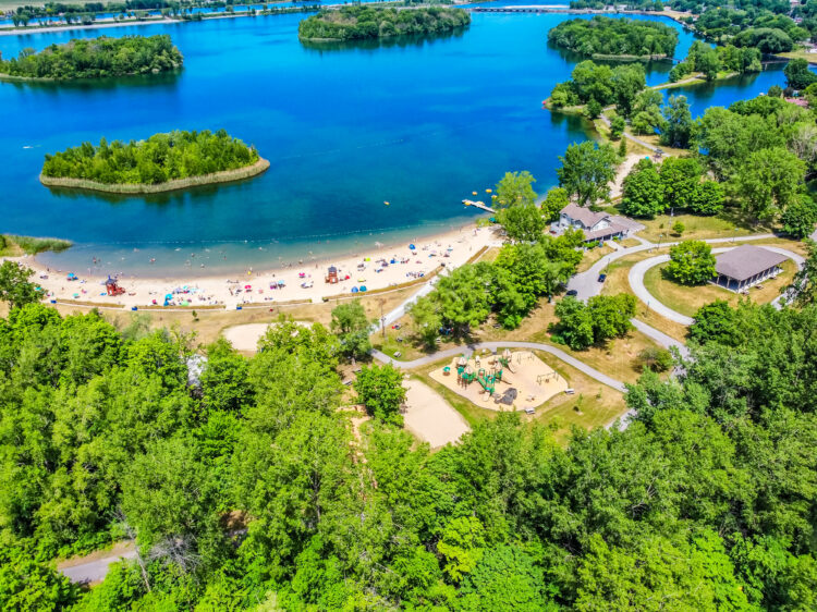 Park with magnificent sandy beach and crystal clear water—it’s the Caribbean of Québec! Volleyball courts, children’s games, hiking trails and boat rentals. Close to bike paths for travelling the Îles du bassin Saint-Timothée.