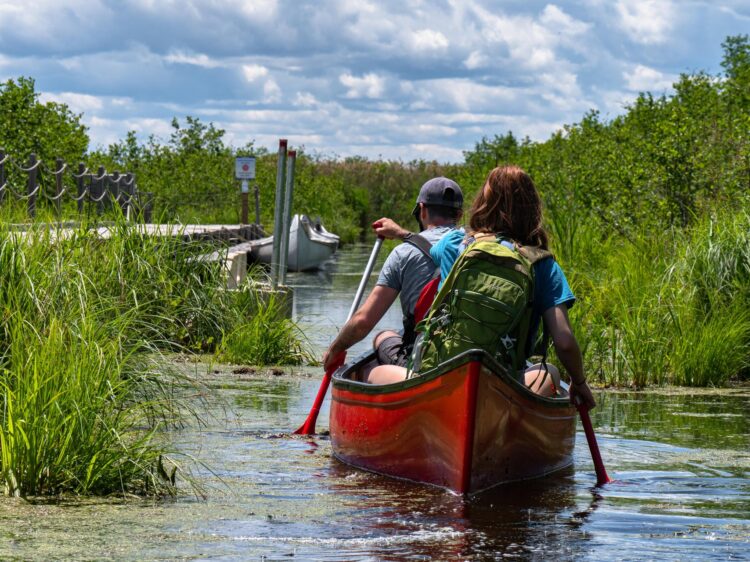 The Lake Saint-François loop, a true hidden gem nestled between nature and the border, takes you into the heart of the peaceful “townships” of Saint-Anicet, right near the U.S. border. As you travel along its peaceful roads, you’ll discover a bountiful countryside where fields, farms, and maple groves stretch out before you, offering a spectacle of colors that change with the seasons and crops. Here, nature comes alive, with stunning views of the mountains in upstate New York. Don’t miss a stop at the Lac Saint-François National Wildlife Refuge, the perfect place to admire the rich wildlife and landscapes. A serene, authentic, and deeply rejuvenating route.