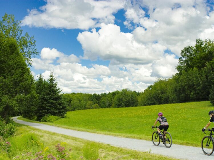 The La Clé des Champs loop is pure cycling bliss in the heart of the countryside. This 60-km route, entirely rural, invites you on a gentle getaway through the fields, farms, and forests of Acton Vale, Saint-Nazaire-d’Acton, and Saint-Théodore-d’Acton. Here, tranquility reigns, and the beauty of the landscape accompanies every pedal stroke. It’s the perfect route for a family outing or a relaxing day in the great outdoors. To round off this adventure in style, treat yourself to a magical evening at the Théâtre de la Dame de Cœur, where giant puppets and scenic poetry enchant young and old alike. A quintessential Montérégie experience, combining nature, culture, and serenity.