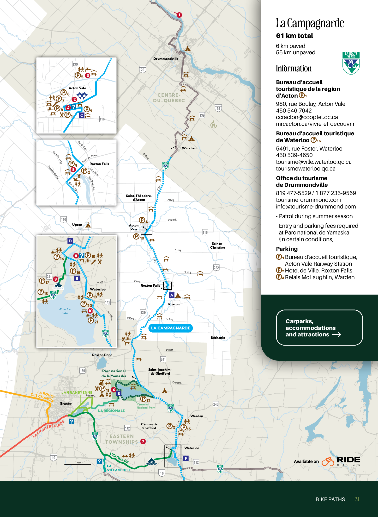 La Campagnarde, aptly named as it runs through the country-side, spans woodland, farmland and small valleys, connecting the Montérégie to the Eastern Townships and the Centre-du-Québec region.