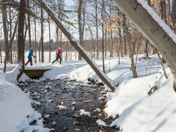 Situé à 15 minutes au sud-est de Montréal, le parc national du Mont-Saint-Bruno compte cinq lacs, un verger, un salon de thé, un centre de location nautique et des dizaines de kilomètres de sentiers en forêt. Reconnu pour sa richesse faunique et florale, cet habitat forestier protégé, d'une superficie de 8,9km2, est l'endroit idéal pour relaxer ou pratiquer des sports de plein air, été comme hiver. En saison hivernale, on peut y louer équipement de ski, raquettes et vélos à pneus surdimensionnés (fatbikes) et on y trouve aussi une pente pour la glissade qui charme petits et grands. Le parc national du Mont-Saint-Bruno : un précieux joyau naturel en milieu urbain.