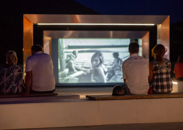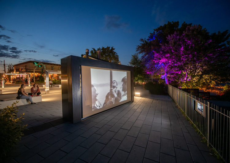 Le Plateau Michel-Brault accueille une œuvre d’art composée de trois cadres lumineux en acier inoxydable de largeurs différentes, qui permettent de « cadrer » des images. Ces trois arches représentent les trois principaux formats académiques de cadres utilisés depuis les débuts de l’histoire du cinéma. Pendant l’été, des courts et des longs métrages sont projetés en soirée.